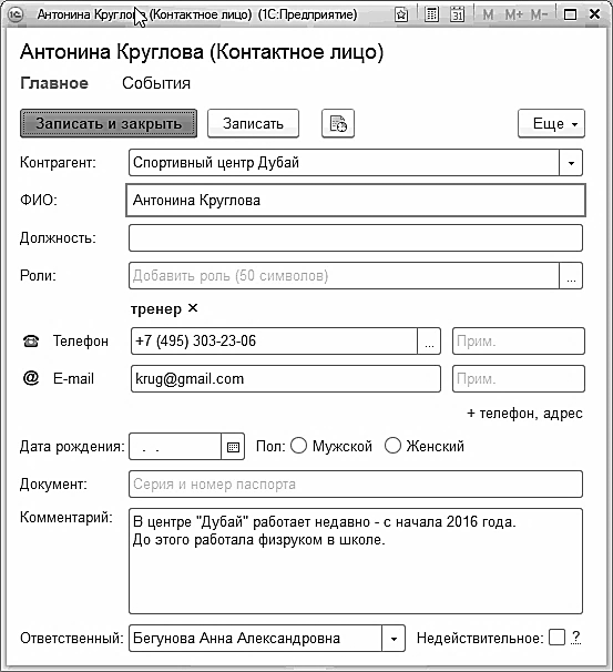 Рис. 58. Контактное лицо контрагента