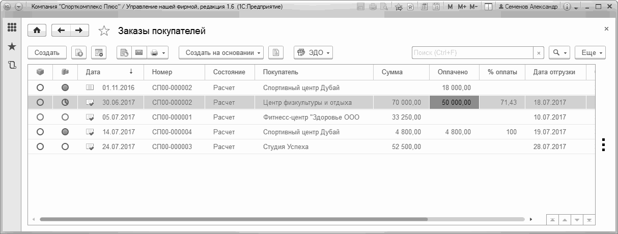 Рис. 97. Журнал заказов покупателей с информацией по оплате