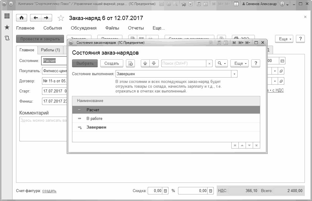 Подводим итог. Практически всю цепочку выполнения работ для заказчика мы отражали одним и тем же документом – "Заказ-наряд", который менял свое состояние на протяжении этой цепочки.