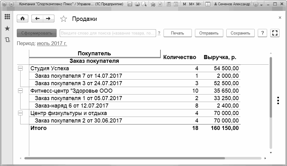 Рис. 117. Отчет "Продажи" в разрезе покупателей и заказов