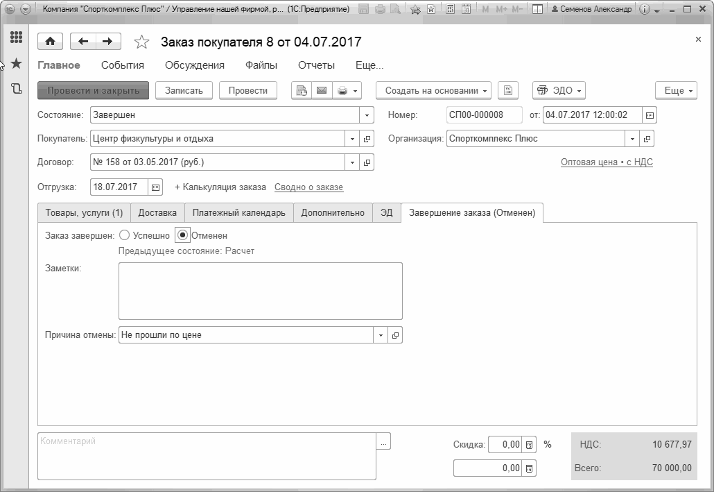 Рис. 124. Отмена заказа покупателя
