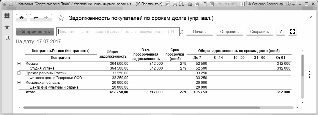 Итак, во всех отчетах, в которых можно получить информацию в разрезе контрагентов, можно получить данные и в разрезе дополнительных реквизитов (в нашем примере – регионов). Это достигается возможностями технологической платформы "1С:Предприятие 8.3".