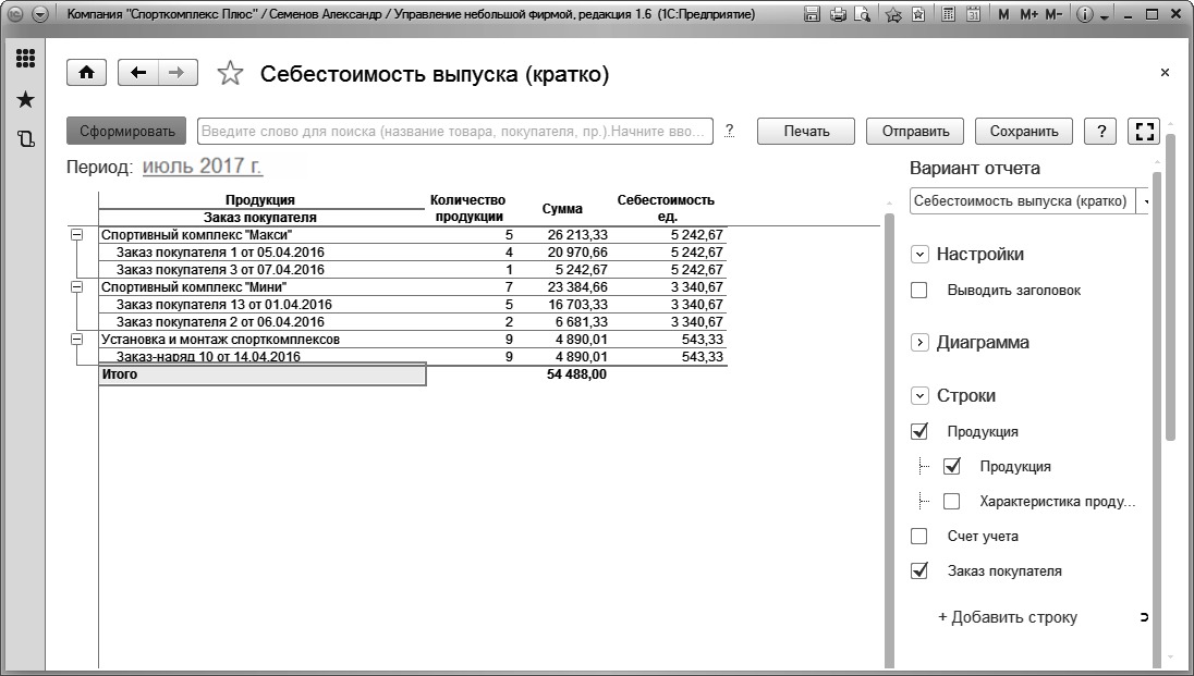 Обратим внимание на то, что помимо наименований продукции (работ) в документе присутствуют и заказы покупателей. Это дает возможность формировать себестоимость производства в разрезе заказов покупателей.