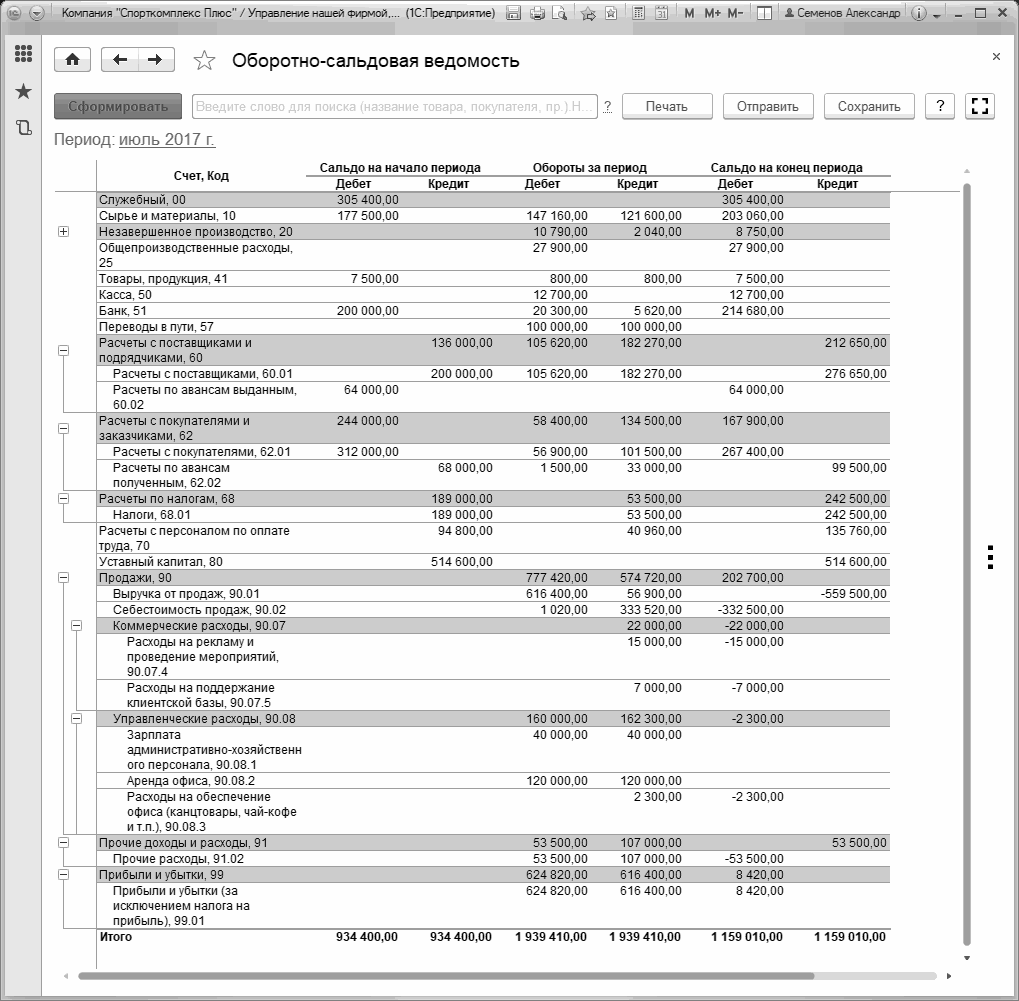 Рис. 219. Оборотно-сальдовая ведомость по всем счетам