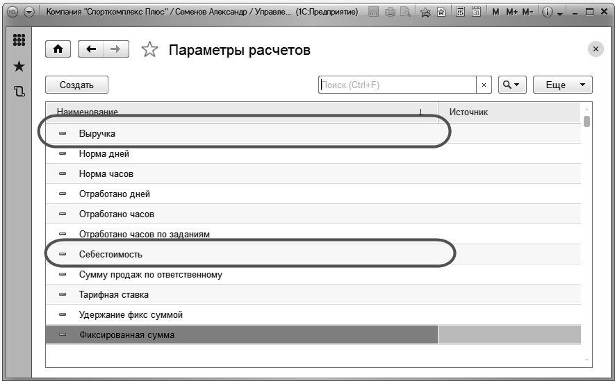 Шаг 1. Добавляем новые параметры расчетов "Выручка" и "Себестоимость" в справочник "Параметры расчетов". Рис. 246.
