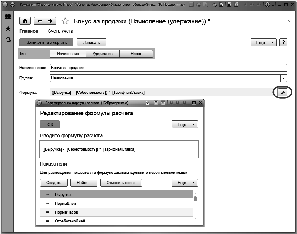 Рис. 249. Редактирование формулы расчета вида начисления