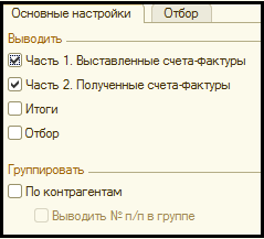 Отчет предназначен для учета выданных, полученных счетов-фактур.