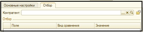 Отбор в отчете может осуществляться по Учреждению, по Контрагенту.