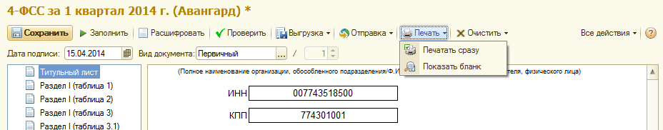 Отчет легко составить по команде "Заполнить", после сохранения его можно будет распечатать, а при наличии необходимости сдавать отчет в электронном виде – выгрузить во внешний файл.