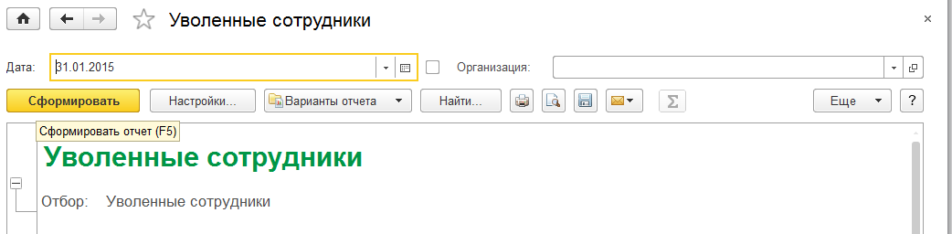 Отчет формирует список уволенных сотрудников на заданную дату.