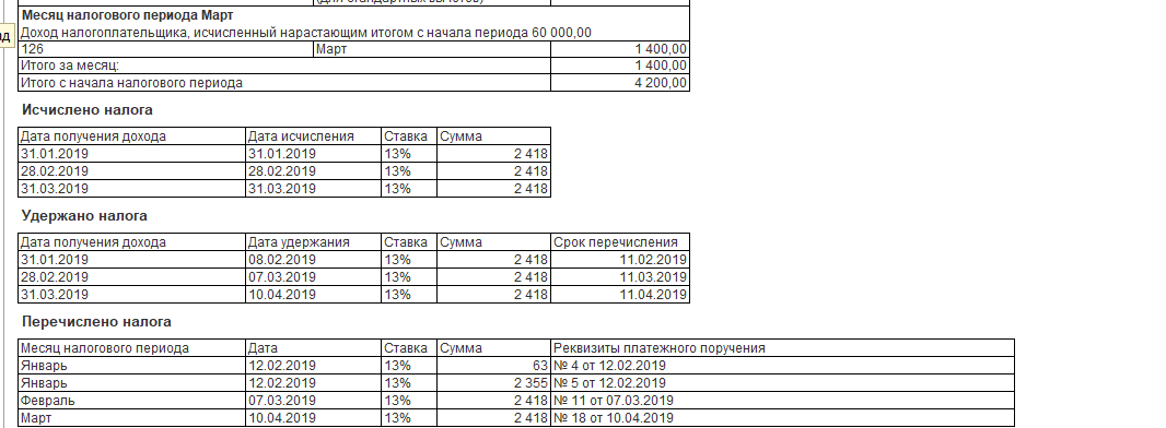 Печатная форма справки представлена на рисунке 9.5.8. В форме 2-НДФЛ:
