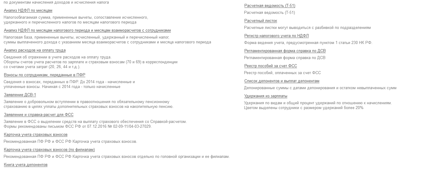 На рисунке 9.5.1 представлены отчеты по заработной плате, которые можно создать в программе: