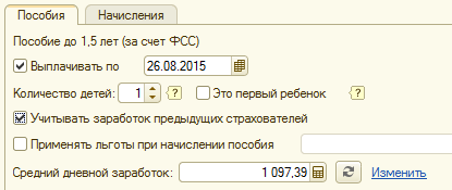 Если назначается пособие до 1,5 лет, то указывается соответствующий флажок и дата окончания выплаты пособия (день исполнения ребенку 1,5 года).