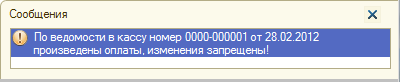 Попытки выполнить действия, связанные с изменением документа или его статуса, приведут к выдаче следующего сообщения.