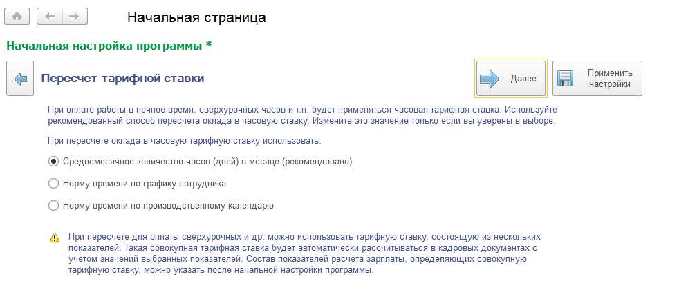 В учебной базе используется настройка, установленная по умолчанию – среднемесячное количество часов (дней).