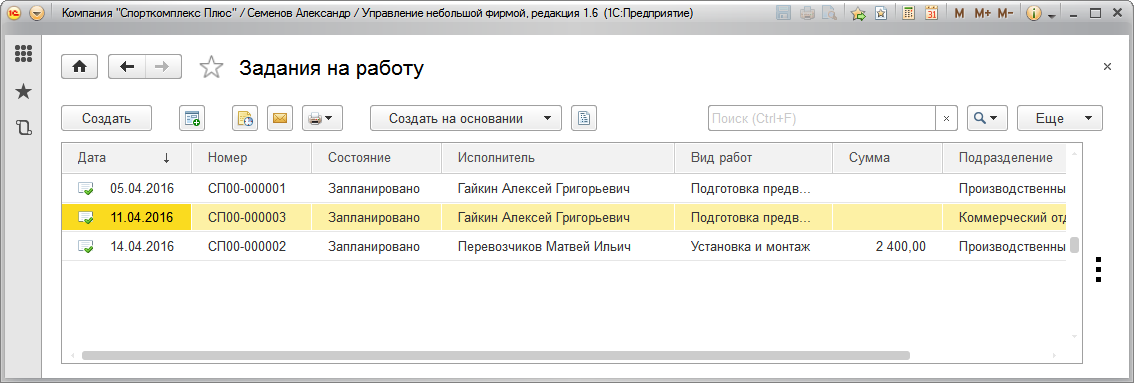 Документ "Учет времени" может быть также введен на основании документа "Задания на работу".