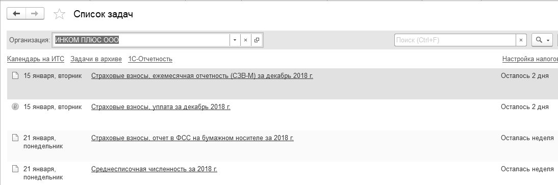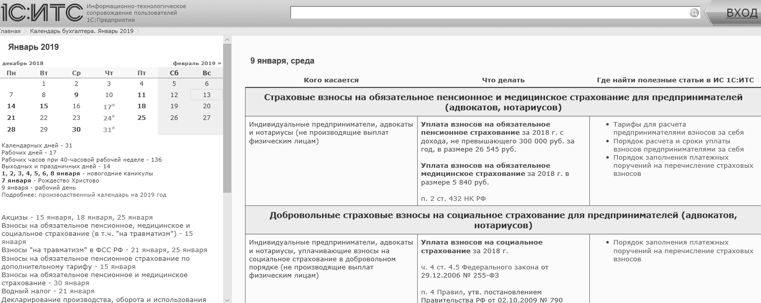 Рис. 8.3.9. Форма окна "Календарь бухгалтера ИТС" в информационной системе 1С:ИТС