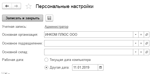 Рис. 8.3.2. Обращение к форме настройки рабочей даты
