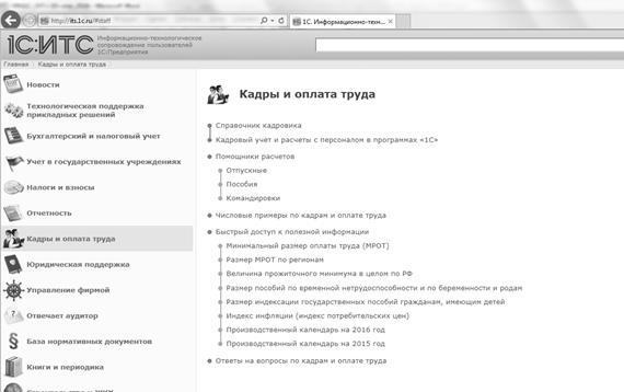 В помощь пользователям программных продуктов фирмы 1С создана Информационная система 1С:ИТС. В ней представлены новости, комментарии и консультации специалистов по вопросам бухгалтерского и кадрового учета, расчета заработной платы, пошаговые инструкции по работе в программе, инструкции по составлению отчетности в ПФР, ФСС и Росстат и отправке отчетности в электронном виде прямо из 1С:Предприятия.