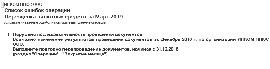 Заполнить документ не получиться, т.к. не были созданы документы за январь, февраль. Программа отслеживает последовательность проведения документов, и выдает сообщения об ошибке (рис. 8.5.10).