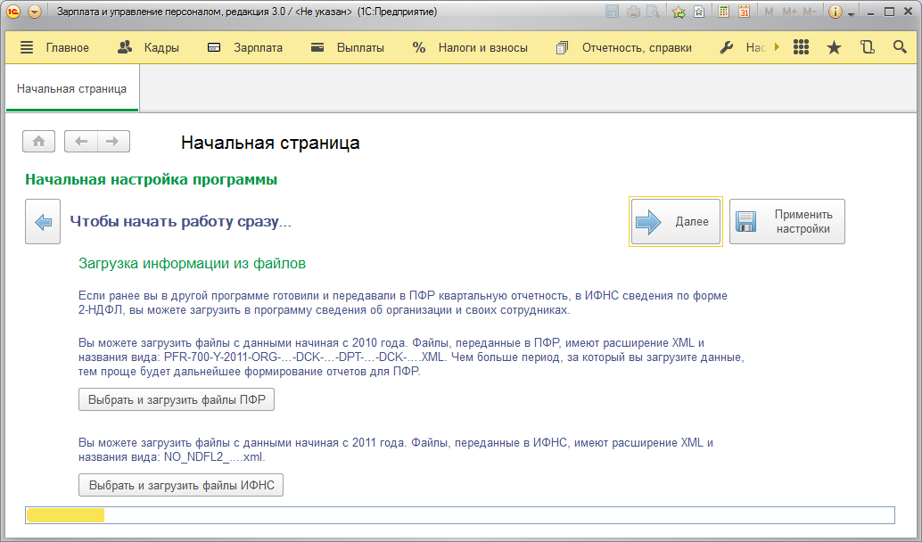 Если предприятие до начала использования программы уже существовало и вело учет, но учет велся в программе, перенос данных из которой не поддерживается, или вовсе без использования программы, то можно загрузить некоторые данные из файлов отчетности, содержащих сведения о сотрудниках.