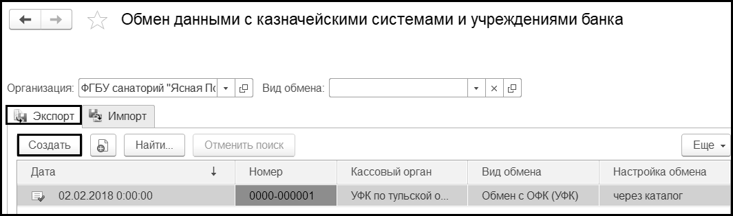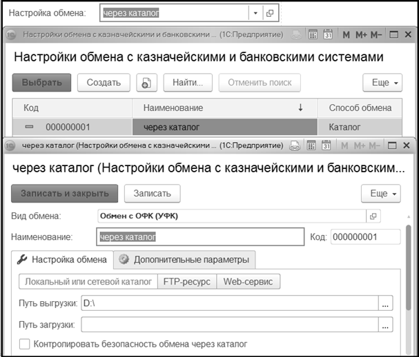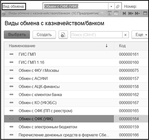Вид обмена – настройка вида обмена – с казначейством или с банком (из справочника Виды обмена с казначейством/банком).