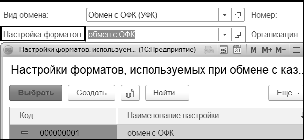 Настройка форматов – выбрать элемент справочника "Настройки форматов, используемых при обмене с казначейскими и банковскими системами", содержащий список объектов для обмена данными и конкретный формат обмена для каждого объекта.