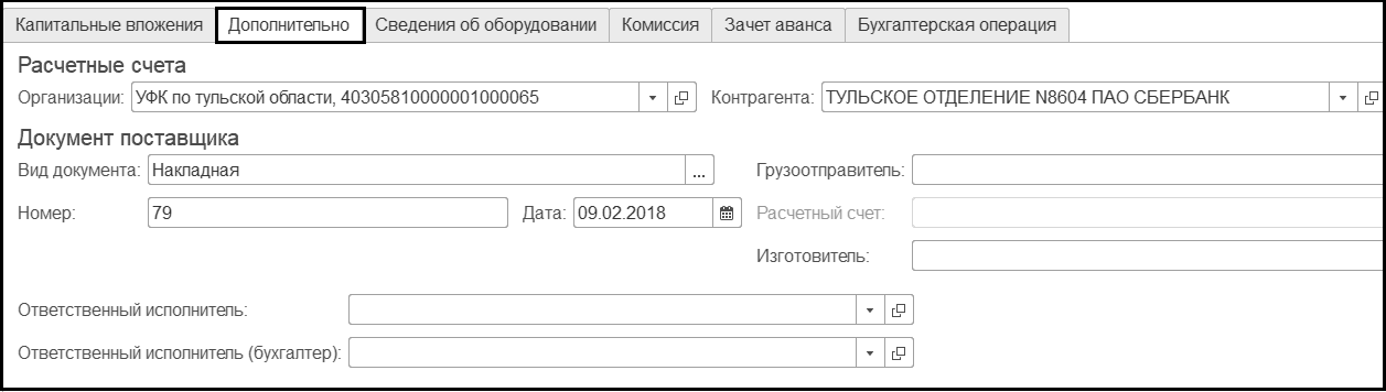 Данным документом не только приходуется оборудование на счет 106.31, поступившее от ООО "Медтехника", но и зачитывается аванс, выданный поставщику (реквизит Зачет аванса – автоматически).