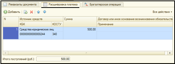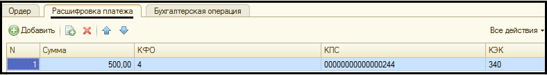 Закладка Расшифровка платежа: