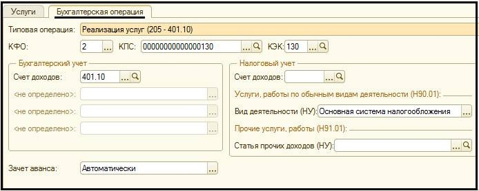 По данной типовой операции (Реализация услуг) – сформированы проводки: