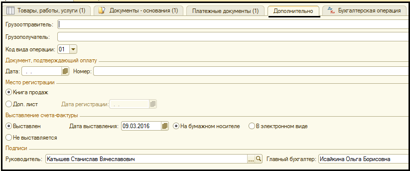 По ссылке Ввести счет-фактуру в нижней части формы документа сформируем документ Счет-фактура выданный.