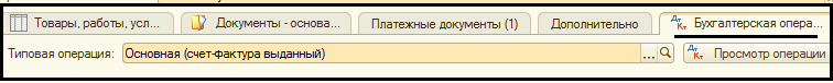 Типовая операция – Основная (счет-фактура выданный).