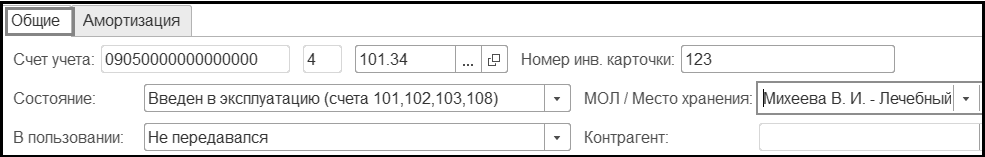 Номер инвентарной карточки – 123 - обязательный реквизит, без номера инвентарной карточки печатная форма инвентарной карточки формироваться не будет.