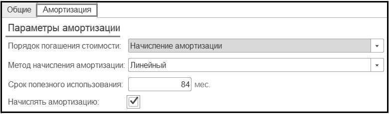 Группа реквизитов Параметры амортизации: