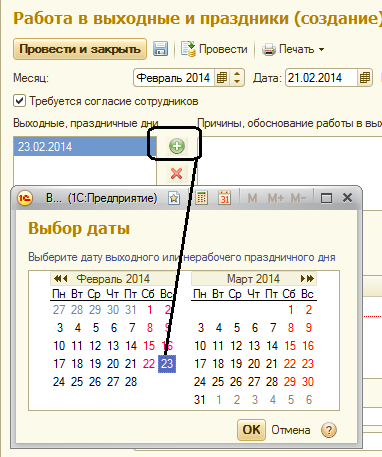 Сотрудник П.Ней отработал 23 февраля по приказу вне своего графика работы (производственная необходимость, привлечение с согласия сотрудника). Зарегистрируем приказ на оплату праздничных дней с согласия сотрудника, оплату производим за день, а не за часы.