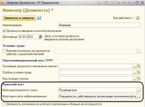 - В справочнике "Должности" доступен ввод категорий воинского учета;