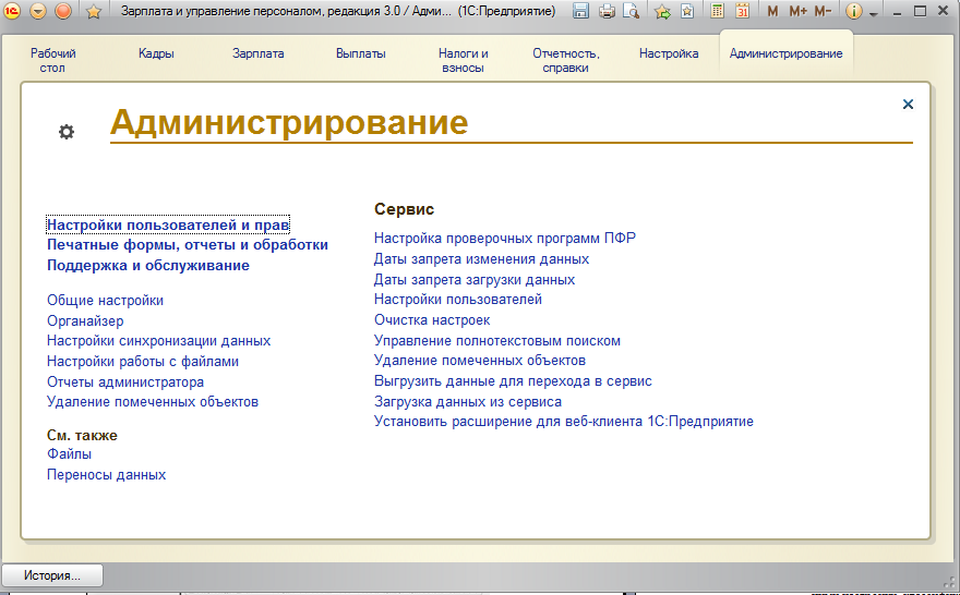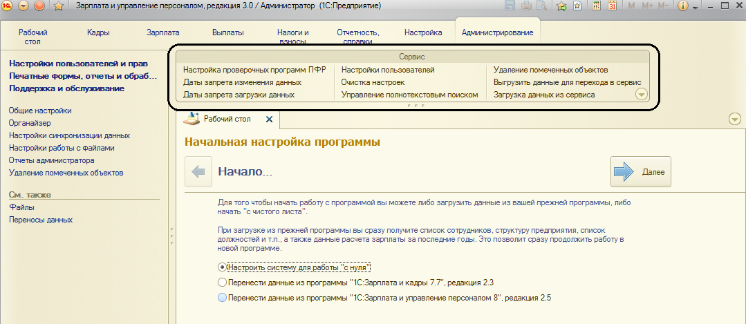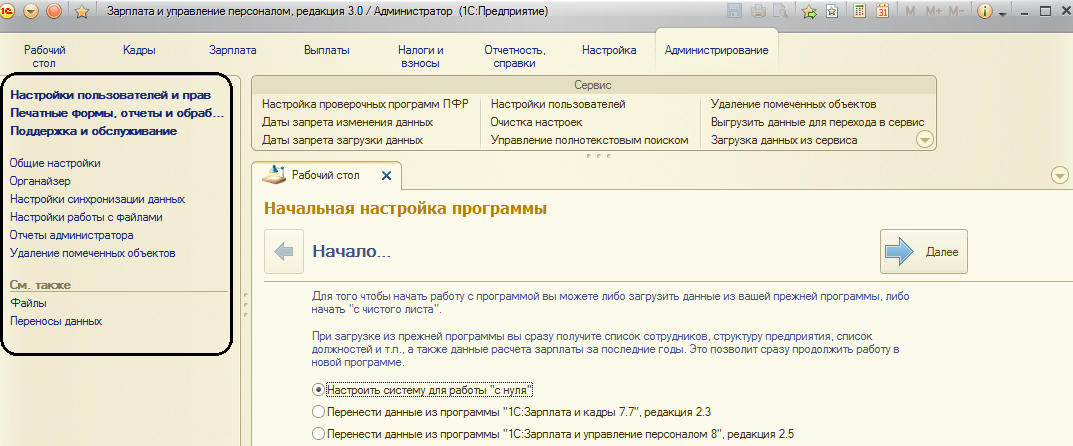 Ниже представлен вид главного окна программы, которое открывается перед нами после первого запуска программы в режиме управляемых форм.