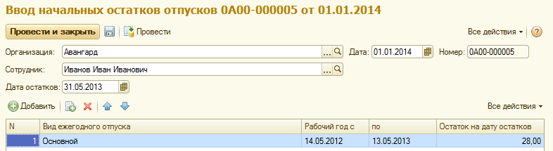 Также рекомендуется ввести действующие на момент начала эксплуатации программы отпуска по уходу за ребенком, исполнительные листы и займы, а также другие отсутствия в программу.