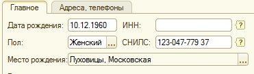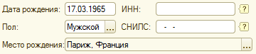 3. Справочник "Физические лица" заполнен следующими элементами: