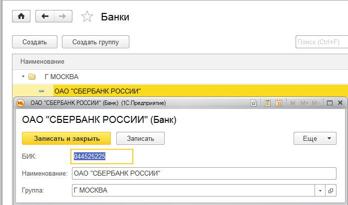 4. Справочник "Банки" заполнен следующим образом: