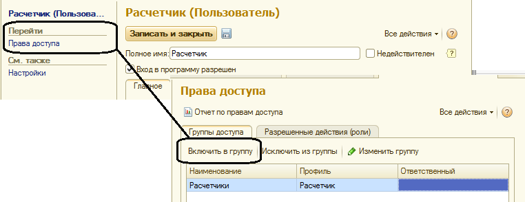При этом назначить профили доступа: "Расчетчики" = Расчетчик, "Кадровики" = Кадровик.