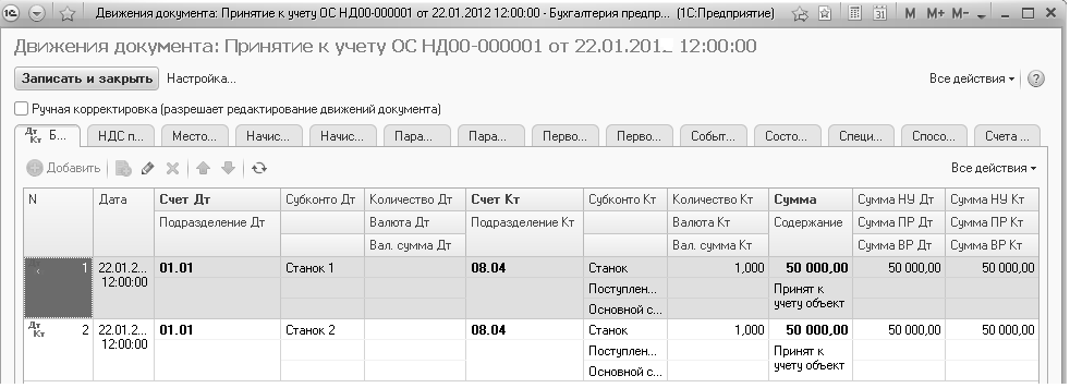 1. 22 января отразите в учете принятие к учету следующих основных средств: «Станок -1» и «Станок -2».