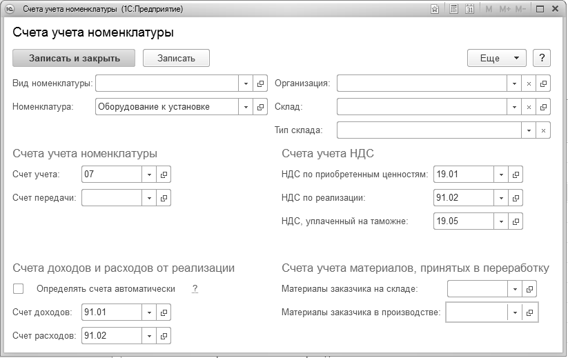 Рис. 10.3.2. Счета учета номенклатуры для номенклатурной группы