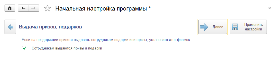 Что обеспечивает: возможность ввода документов по регистрации выданных призов и подарков