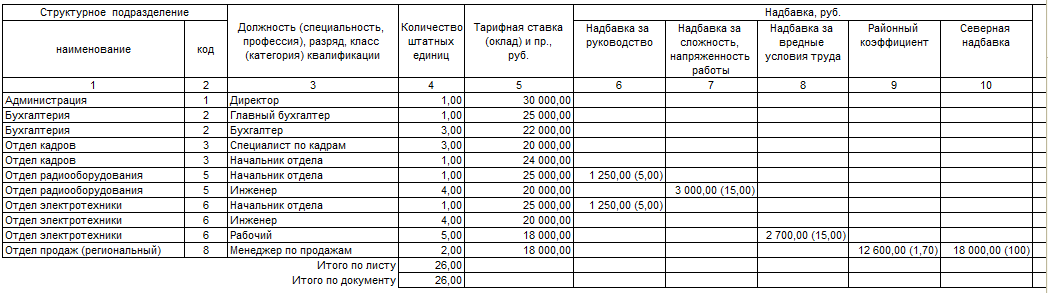 Как уже отмечалось выше, в настройках программы дополнительно можно указать и другие флажки, которые могут оказать влияние на формирование штатного расписания.