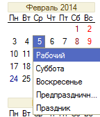 Если пользователю требуется выполнить изменения в производственном календаре самостоятельно, он может выбрать курсором тот день, для которого требуется поменять характеристики и нажать одну из команд: