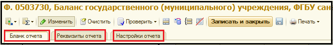 верхней командной панели формы отчета.