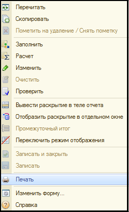 Если отчет предусматривает возможность автоматического заполнения по данным учета, то в командной панели будет доступна кнопка Заполнить в меню Заполнение