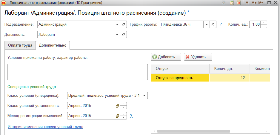 3. Если в организации применяется спецоценка условий труда, то уточнить класс условий также можно не только для должности, но и для позиции штатного расписания.