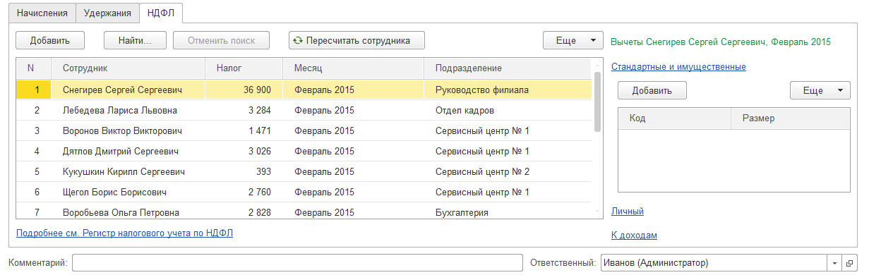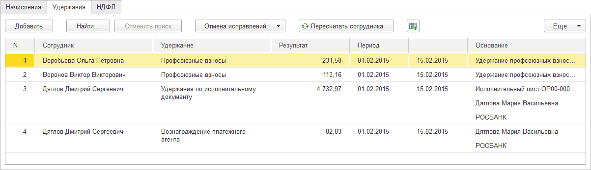 Рассчитаны удержания: